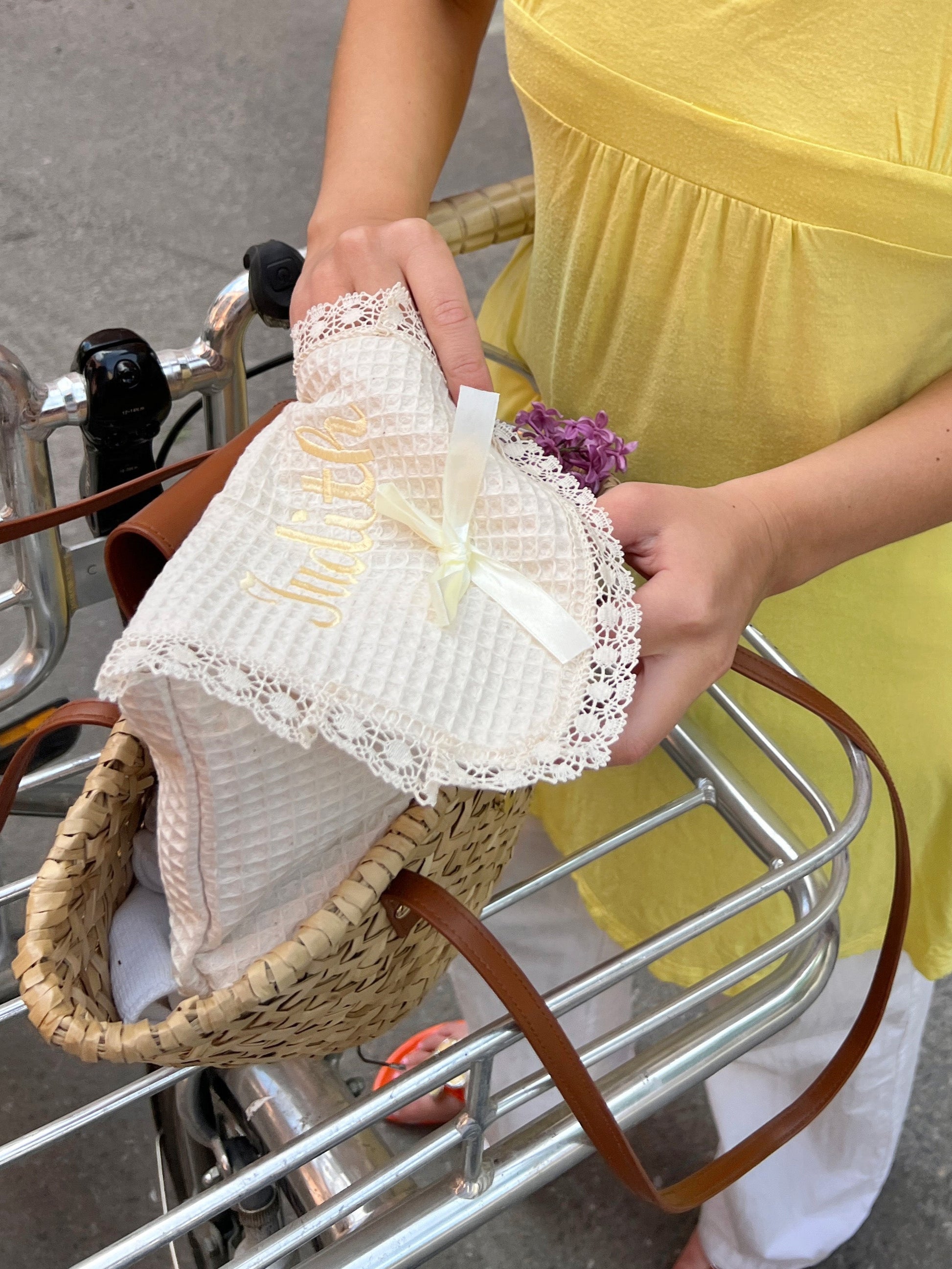 for us summer is yellow. sunshine and freckles — the prettiest season of them all. personalized with your chosen name embroidered in the cutest yellow she's the perfect gift for her or for yourself — a timeless and intimate detail. the magnetic closure keeps your beauty essentials safely in place for a lifetime.
