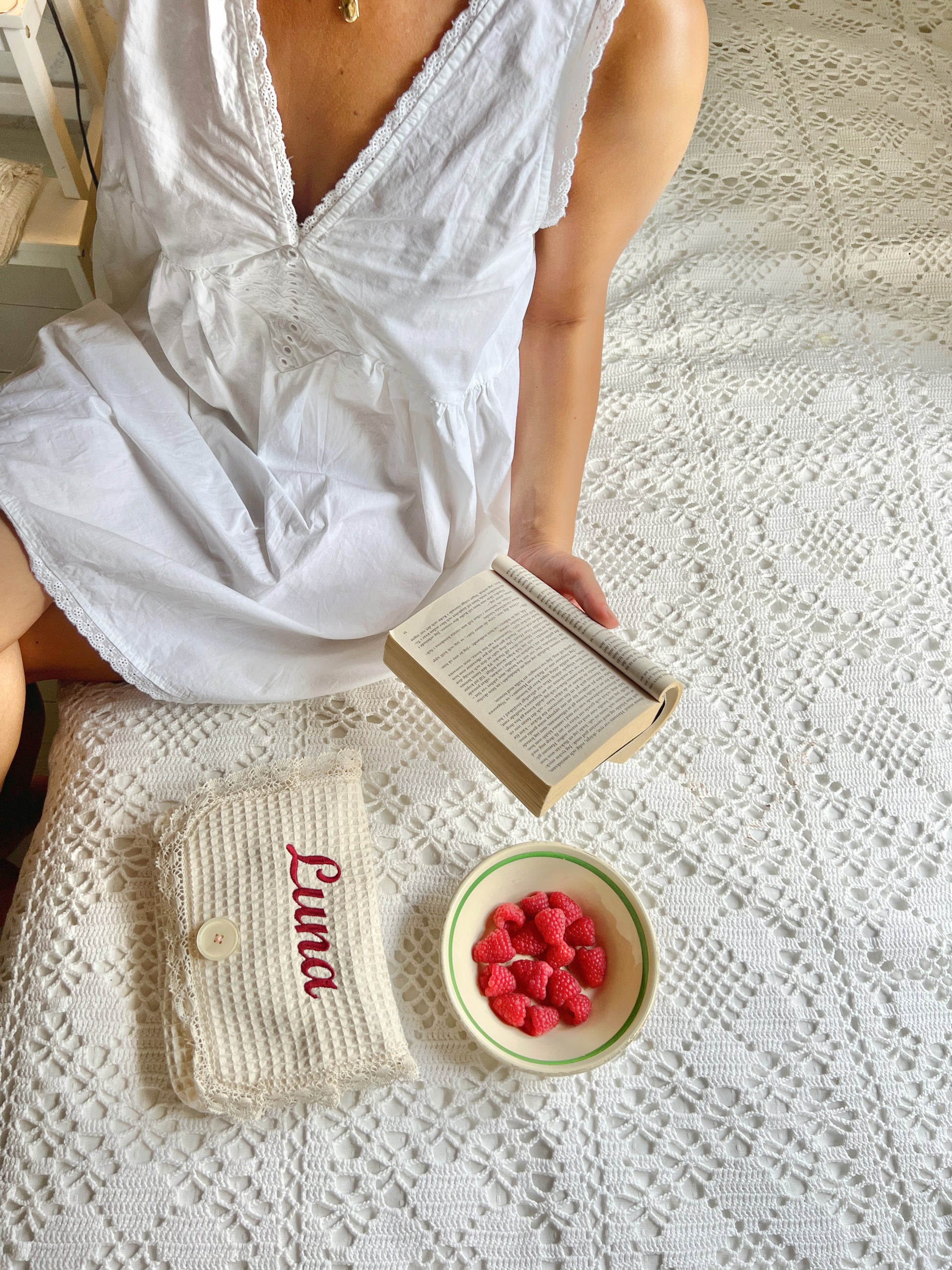 our makeup bags are made in Italy just outside of milan. inspired by the timeless beauty of traditional italian style. makeup bag roos is crafted from 100% cotton, with embroidery added in sweden.
